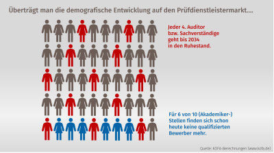 Jeder vierte Auditor bzw. Sachverständige, der bei einem Prüfdienstleister in Deutschland abhängig beschäftigt ist, wird in den nächsten 10 Jahren in den Ruhestand gehen. Was bedeutet das konkret? Wir haben uns einmal Zahlen angesehen.