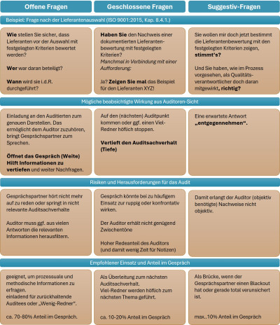 Welche Fragetechniken nutze ich in Audits und wie wirken sie?